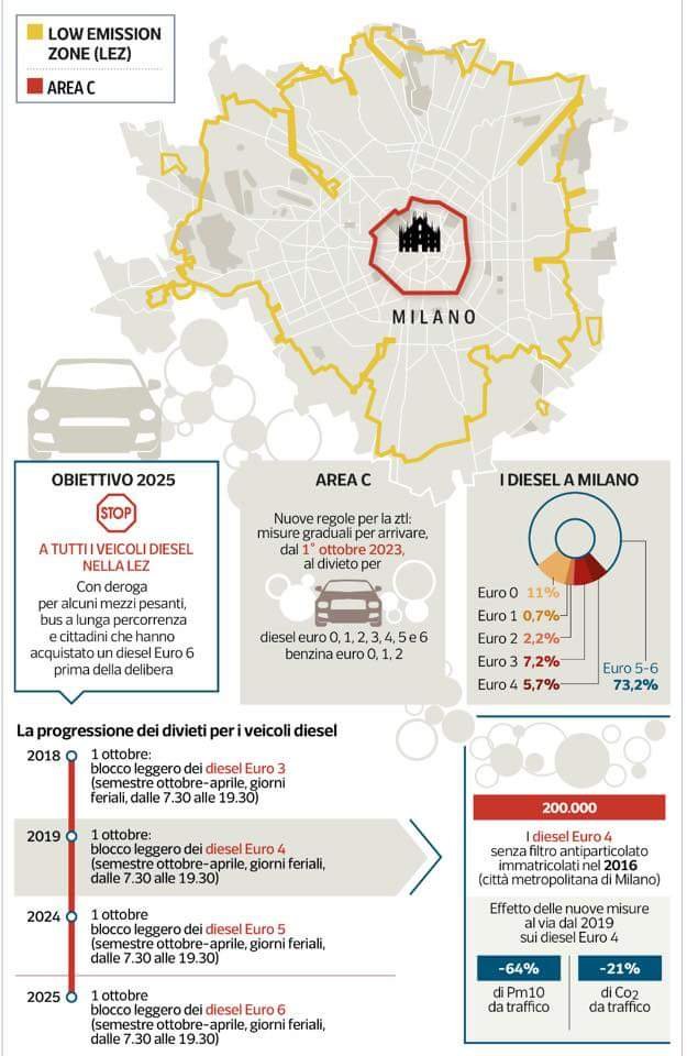 Dalla stampa apprendiamo che il Comune di Milano ha deciso di anticipare le scadenze per i divieti di circolazione di mezzi inquinanti – diesel in particolare – nelle due zone a traffico limitato Area C e la meno nota ma molto più ampia LEZ (Low Emission Zone)