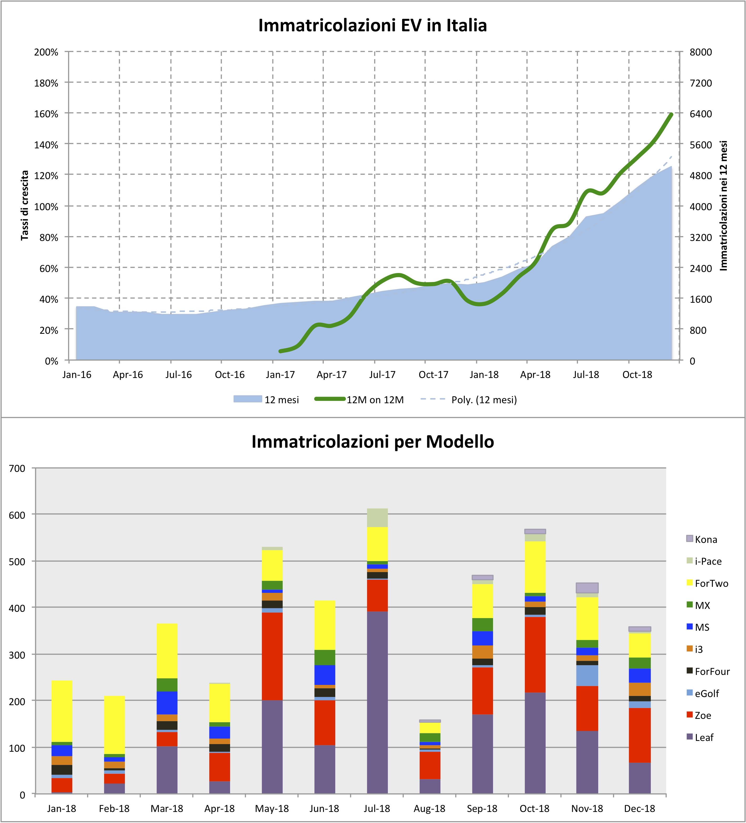Intendiamoci, il rallentamento di fine anno non è affatto una novità, dato che l’acquirente (avendo in mente il futuro valore dell’usato) da sempre spinge per immatricolare la sua vettura nell’anno successivo a meno che ne abbia improrogabile bisogno: avremmo perciò potuto aspettarci “normalmente” circa 450 unità a dicembre; la differenza ulteriore è dovuta dunque principalmente all’attesa degli incentivi. Ciò detto, l’anno si chiude in zona 5.000, che rappresenta pur sempre oltre il 260% delle nemmeno 2.000 unità immatricolate nel 2017 in un panorama generale dell’auto che ha visto una frenata che ormai su base annua supera il 3%, superando di poco quota 1.9 milioni.