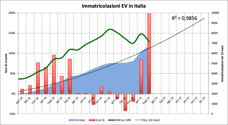Va sottolineato che pur ritracciando rispetto al tendenziale del 150% fatto registrare a fine d’anno, il tasso di crescita sui 12 mesi resta stellare, se confrontato al -1,5% fatto segnare dal comparto termico: quest’ultimo vede il diesel contrarsi di oltre il 20% mentre le motorizzazioni a benzina crescono del 22% e quelle a metano scendono di oltre il 30%.