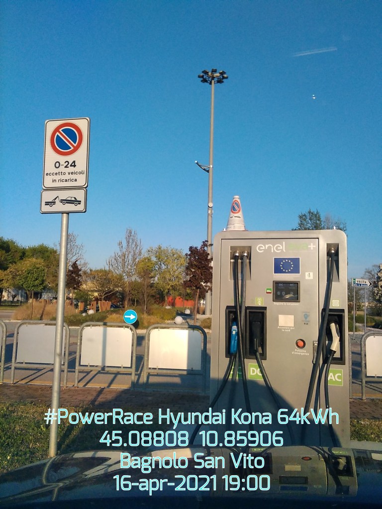 La ricarica avviene ad una buona velocità (47/48 kW), ma oltretutto dobbiamo scontare una falsa partenza – la prima volta che la tessera ENEL mi tradisce :-D. Anche ad Arezzo, temperatura di 14 gradi.