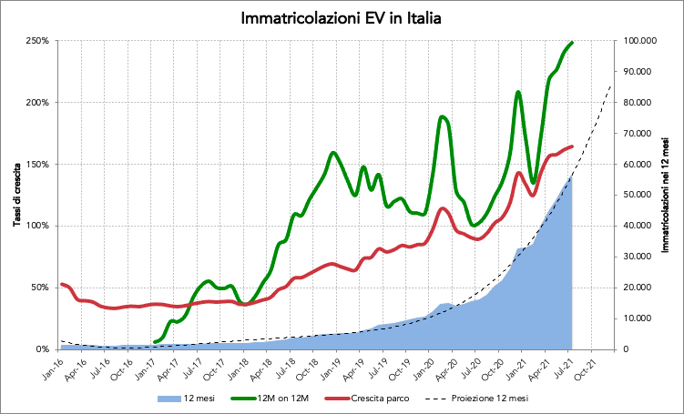 Per la prima volta mi pare che i numeri indichino che davvero il totale immatricolato potrebbe superare le 70.000 unità soprattutto se gli ultimi 4 mesi andranno forte come negli anni precedenti. Ho ritoccato dunque leggermente la mia previsione a circa 73.500 immatricolazioni totali 2021.