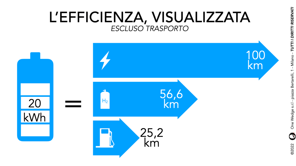 Con la trazione elettrica, in sostanza, a parità di energia si fanno più o meno il quadruplo dei kilometri che si fanno a benzina.