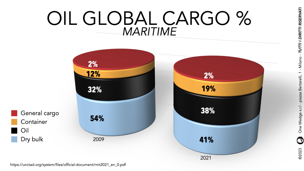 Specifically, oil represents a whopping 38% of all maritime shipping cargo: