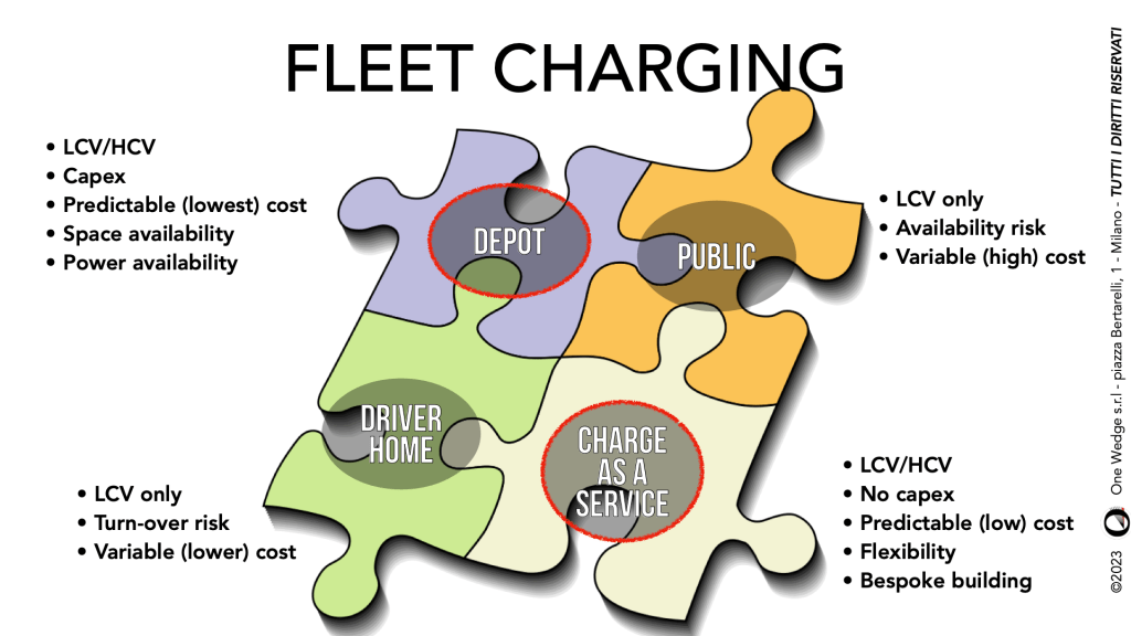 OneWedge believes that there is no silver bullet, i.e. a unique solution that will solve each and every charging problem for professional fleet owners, but rather a mix of solutions, each with its own application scenario, all working in cooperation.