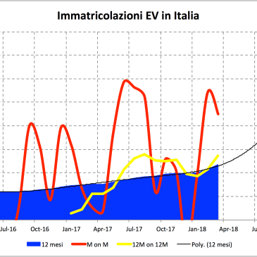 Mercato generalmente in ripresa (+6,5% su Aprile 2017) con elettriche in grande spolvero (+96%) trainate dalla locomotiva Smart. Anche il mese di Aprile sembra confermare la curva in accelerazione: l’aggregato degli ultimi 12 mesi infatti cresce del 63% rispetto ai 12 mesi precedenti, allungando ancora il passo rispetto ai valori dei mesi precedenti: 54% (Marzo) 43% … More Immatricolazioni Aprile 2018